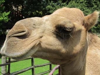 Keywords: camel head mother dromedary portrait close up animal transportation game preserve enclosure looking profile tame travel outdoors brown