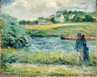 | Keywords: Camille Pissarro Promenade au Bord de l Eau Pontoise 1877.jpg Artwork Creator Camille Pissarro 1877 oil on canvas size cm 21 8 27 3 object history exhibition history credit line Inscription C Pissarro 77 Signature bottom left verso Stempel Couleurs Fines/Place du Louvre/Colin/19 Rue Des Prêtres 19 <br>Etikett 39 Pissarro Bords de rivière H 22c; L 27c accession number place of creation http //www suppanfinearts com/Werke/pissaro html Galerie Suppan Q21741448 PD-old-100 Images from Galerie Suppan Paintings of Pontoise by Camille Pissarro 1877 paintings by Camille Pissarro |