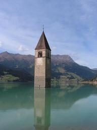 | Keywords: Campanile Curon Venosta.jpg Denkmalgeschütztes Objekt Südtirol 14990 The belltower of the church of Curon Venosta Graun im Vinschgau submerged by the water of the Lake of Resia Clocher de l'église de Curon Venosta submergé par les eaux du lac de Resia Own 2006-09-16 Snowdog Reschensee Kirchturm Alt-Graun |