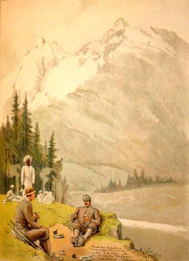 | Keywords: Camping, Himalayas.jpg en Lloyd's Sketches of Indian Life London 1890 chromolithographs enhanced with gum arabic Arrival in Bombay native women-- visions of Lalla Rookh waking in the morning street scene Central India revenge for noise donkey-riders soldiers croquet dust-sprinkling at the club The Alligator's Dinner Hour Camping Himalayas families hunting porters various sketches 1 various sketches 2 various sketches 3 various sketches 4 Source ebay Aug 2005 1890 http //www columbia edu/itc/mealac/pritchett/00routesdata/1800_1899/dailylife_drawings/lloyd1890/lloyd1890 html Lloyd's Sketches PD-Art Uploaded with UploadWizard W Lloyd 'Lloyd's Sketches of Indian Life' London Chapman Hall 1890 |