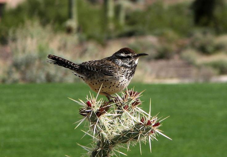 Keywords: campylorhynchus brunnei cactus wren cactus plant prickly thorns california bird close-up macro nature outside