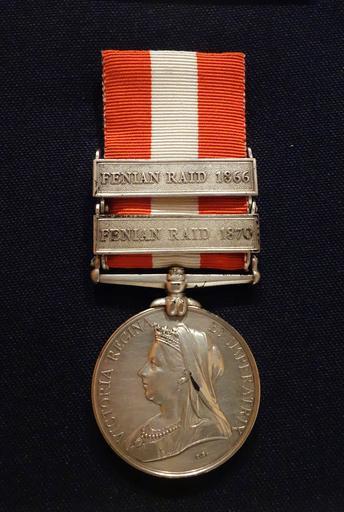 View Original: | Canada General Service Medal, awarded to Pte. Allan Poyntz Patrick, Queen's Own Rifles, for the Fenian Raids of 1866 and 1870 - Glenbow Museum - DSC00634.JPG (3154x4688) | |||