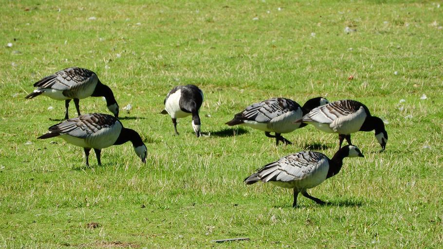 Keywords: canada goose branta leucopsis goose birds ducks grazing water bird feeding covey