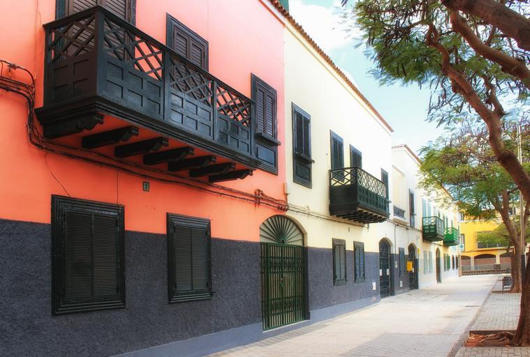 Keywords: canary islands town urban buildings architecture colorful balcony pavement sidewalk tropics tropical