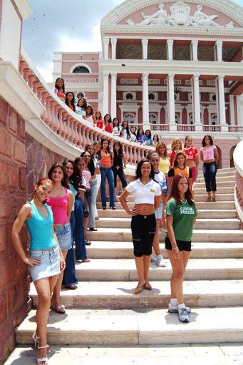 Keywords: Candidatas no Teatro Amazonas.jpg pt Na agenda das candidatas inclui visitas aos pontos turísticos de Manaus Arquivo da coordeação do Peladão Rick Oliveira 2011-03-18 Association football competitions 2005 photographs 2005 in Brazil People standing on stairs Group photographs Green and white clothing Women smiling while standing |