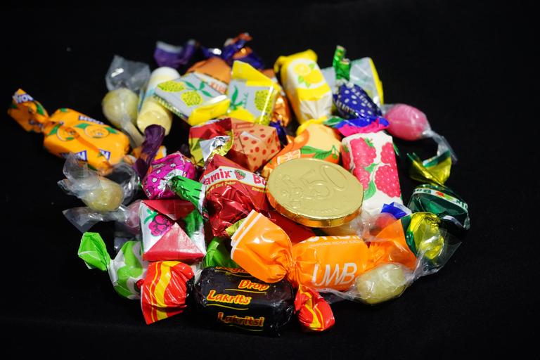 Keywords: candy hand made sweets treat confectionery sucking candies colorful color gold coins