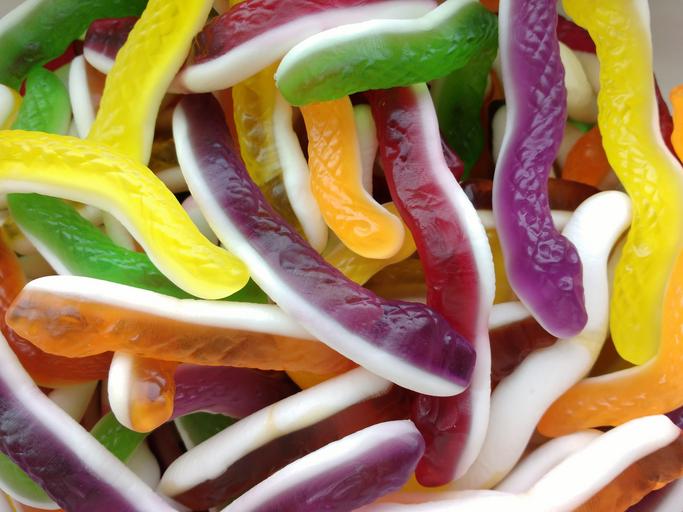 Keywords: candy sugar delicious jelly colorful many snakes nibble dental caries mess pile pattern