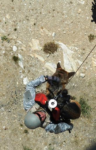 Keywords: Canines Take Part in Aviation Training DVIDS50010.jpg en Staff Sgt Michael Hile with Ronnie his military working dog 554th Military Police company is being hoisted into a UH-60 Black Hawk helicopter during a canine-hoist training mission July 15 near Bagram Airfield Afghanistan 2007-07-15 Sgt Aubree Rundle https //www dvidshub net/image/50010 50010 2007-07-17 15 47 BAGRAM AIR FIELD AF PD-USGov Bagram Air Base Images from DoD uploaded by Fæ |