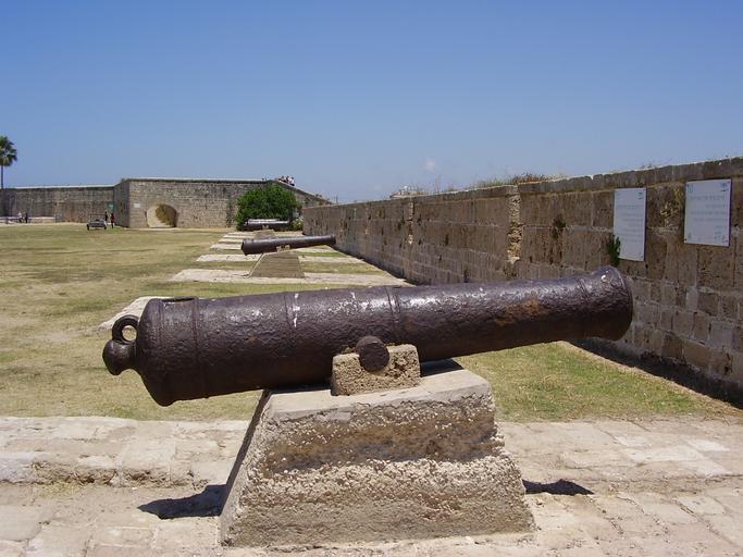 Keywords: Cannons in Acre.jpg en Cannons in Acre Israel ×ª×•×ª×—×™× ×‘×—×•×ž×ª עכו Own avishai teicher User Avi1111 01/06/2008 public domaine Cannons in Old Akko walls