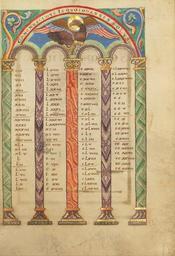 | Keywords: Canon Table Page - Google Art Project (6806932).jpg None 430703 Unknown /collection/the-j-paul-getty-museum/artwork/canon-table-page-unknown/6806932/ Unknown illuminator /collection/the-j-paul-getty-museum/ The J Paul Getty Museum 343005 http //www getty edu/museum 3/12/2012 5 15 51 PM /collection/the-j-paul-getty-museum/artwork/canon-table-page-unknown/6806932/ 1120 about 1120 - 1140 Eagles Saint John the Evangelist Tempera colors gold and silver on parchment 229 6806932 True 1140 3/25/2012 9 28 41 AM lido getty edu-gm-obj110049 http //www getty edu/art/gettyguide/artObjectDetails artobj 110049 http //www getty edu/legal/copyright html Folio 1120 1150 Helmarshausen Germany Creation w165 x h229 cm about 1120 - 1140 False 0 68359375 Part canon-table-page-unknown Canon Table Page c 165 Tempera colors gold and silver on parchment Eagles Saint John the Evangelist http //www getty edu/legal/copyright html special url_id PgHjADdvB8NJ6A PD-old-100 MS LUDWIG II 3 Getty museum - Gospel book from Helmarshausen Canon tables Google Art Project works by unknown artist Eagle of Saint John the Evangelist in miniatures |