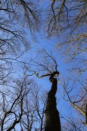 Keywords: canopy forest trees crown treetop branches log sky nature german forest