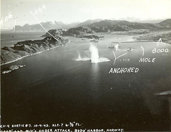 Keywords: Cap Guir Under Attack In Bodo Harbor 1943.jpg en Photo showing the the German merchant ships Malaga Cap Guir and Rabat under attack in the Bodø Harbor Norway by aircraft from Carrier Air Group 4 from the aircraft carrier USS Ranger CV-4 on 4 October 1943 ru Фотог афия показывает момент воздушной атаки на суда Malaga Cap Guir и Rabat в бухте Бодё http //www airgroup4 com/malaga-3 jpg David Thomas cite web http //www airgroup4 com Air Group 4 en mailto davidthomas cloudcroft com webmaster 1943-10-04 PD-USGov-Military-Navy 1943 in Norway USS Ranger CV-4 Historical images of Bodø World War II aerial photographs of Norway Aerial photographs of Nordland Historical images of Nordland |