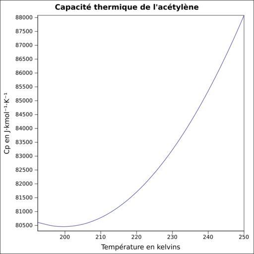 | Keywords: Capacité thermique acétylène.svg fr Capacité thermique liquide calculée d'après <br/> Robert H Perry et Donald W Green Perry's Chemical Engineers' Handbook McGraw-Hill USA 1997 7e éd 2400 p ISBN 0-07-049841-5 p 2-170 own Epop 2010-06-28 Created with Gnumeric Heat capacity |