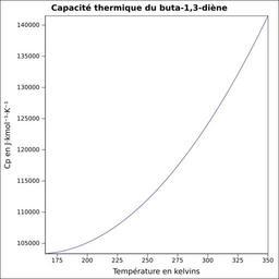 | Keywords: Capacité thermique buta-1,3-diène.svg fr Capacité thermique liquide calculée d'après <br/> Robert H Perry et Donald W Green Perry's Chemical Engineers' Handbook McGraw-Hill USA 1997 7e éd 2400 p ISBN 0-07-049841-5 p 2-170 own Epop 2010-06-28 Created with Gnumeric Heat capacity |