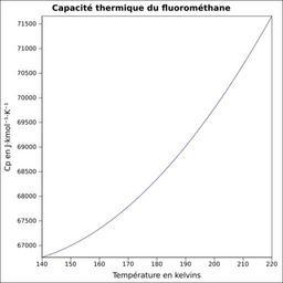 Keywords: Capacité thermique fluorométhane.svg fr Capacité thermique liquide calculée d'après <br/> Robert H Perry et Donald W Green Perry's Chemical Engineers' Handbook McGraw-Hill USA 1997 7e éd 2400 p ISBN 0-07-049841-5 p 2-170 own Epop 2010-06-28 Created with Gnumeric Heat capacity |