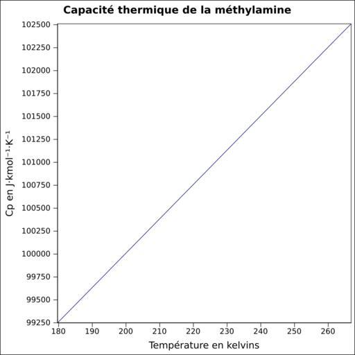 | Keywords: Capacité thermique méthylamine.svg fr Capacité thermique liquide calculée d'après <br/> Robert H Perry et Donald W Green Perry's Chemical Engineers' Handbook McGraw-Hill USA 1997 7e éd 2400 p ISBN 0-07-049841-5 p 2-170 own Epop 2010-06-28 Created with Gnumeric Heat capacity |