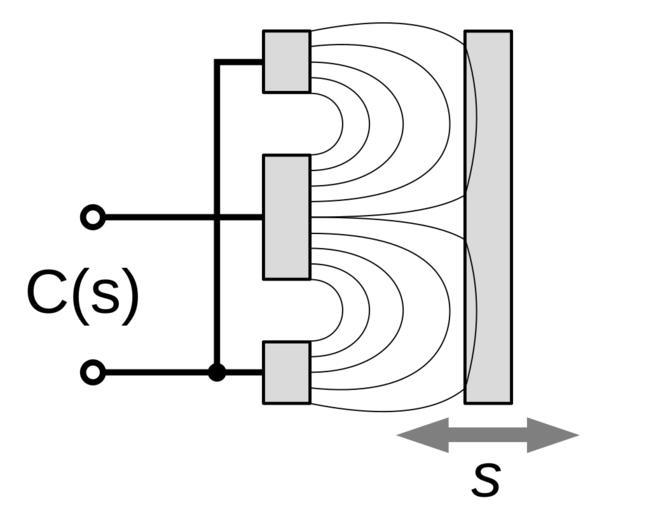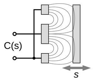 Keywords: Capacitive sensor scheme.svg Schema eines kapazitiven Sensors mit GND-Elektrode Scheme of an capacitive sensor with Ground-electrode own 2012-04-09 MatthiasDD 120px Created with Inkscape yes Electronic sensors