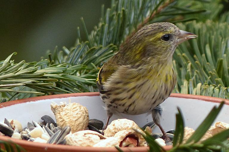 Keywords: cape canary serinus female bird animal winter garden foraging