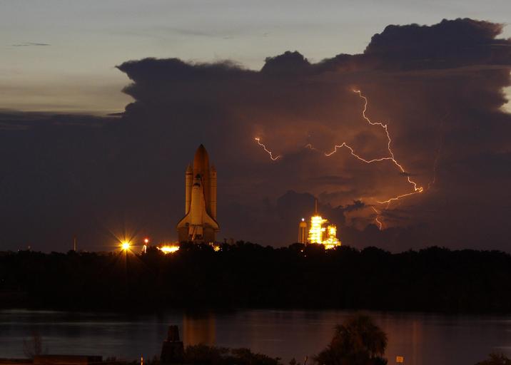 Keywords: cape canaveral space shuttle launch pad lightning clouds vehicle launch tower gantry astronaut spacecraft