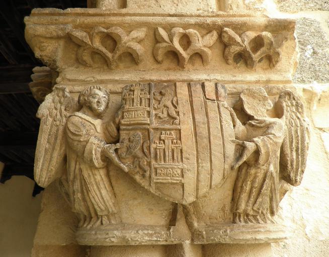 Keywords: CapitelE10.JPG en 10th capital in easthern corridor of Santa Maria la Real de Nieva church Segovia province Spain Coat of arms of Castille and Aragon with two angels homage to King John II and his wife Mary of Aragon es 10º capitel de la galería oriental del claustro de la iglesia de Santa María la Real de Nieva en la provincia de Segovia España Escudo de armas de Castilla y Aragón con dos ángeles en homenaje al rey Juan II y su esposa la reina María de Aragón own Osado 2010 Capitals of the Cloister of Santa María la Real de Nieva Maria of Aragon Queen of Castile Coats of arms of queens of Castile |