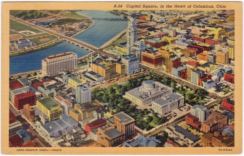 Keywords: postcard postcards white border whiteborder white border era whiteborderera used columbus columbus, ohio columbusohio ohio aerial view aerialview downtown leveque tower levequetower leveque lincoln tower levequelincolntower a.i.u. citadel aiucitadel scioto river sciotoriver riverfront rivers river state capitol statecapitol statehouse state capitol building statecapitolbuilding landmarks 1945 1940s wwii-era wwiiera w.e. ayres weayres w.e. ayers weayers curt teich co. curtteichco curteich curteich-chicago curteichchicago c.t. art colortone ctartcolortone civic center group civiccentergroup buildings city buildings citybuildings ohio state office building ohiostateofficebuilding state office building stateofficebuilding a.i.u. tower aiutower state house ohio state house ohiostatehouse ohio state capitol ohiostatecapitol civic center civiccenter drawing photo border Description on front of card: Capitol Square, in the Heart of Columbus, Ohio No. in Series: A-34 Description on back of card: Columbus, Ohio from the air, surrounding State Capitol and Grounds. Capitol Building is constructed of Ohio gray limestone and covers about two of the 10 acres of the site in the center of the city. Published by: W.E. Ayres, Columbus, Ohio | Genuine Curteich-Chicago "C.T. Art-Colortone" post card, a tradename under Curt Teich Co., Chicago, Illinois Used. Publisher Note: Curt Teich emigrated to Chicago in 1895. He had worked as a lithographer in Lobenstein, Germany. He founded the Curt Teich Company in 1898, concentrating on newspaper and magazine printing. He was an early publisher of postcards, but he didn't begin printing them himself until 1908. According to MetroPostcard.com, "As his competition dwindled, his sales expanded and his American factories would eventually turn out more postcards than any other in the United States. " The company was best known for their wide range of advertising and postcards of North America. By the 1920s, it was producing so many postcards with borders that they became recognized as a type dubbed "White Border Cards," creating an "era." Curt Teich started using offset presses in 1907, but it took a number of years before he had offset presses made to his satisfaction, and many more years for him to perfect the method. His innovations in this printing technique directly led to the production of what we now call "linens" by the early 1930s. The company aided the war effort during the second world war by also printing many military maps. Curt Teich eventually turned management of the company over to his son, but he remained active in company operations throughout its history. Curt Teich died in 1974 and the family business was sold to Regensteiner Publishers who continued to print postcards at the Chicago plant until 1978 when the rights to the company name and processes were sold to the Irish company, John Hinde Ltd. Their California subsidiary now prints postcards under the name John Hinde Curteich, Inc. Source: www.metropostcard.com/publisherst.html Description on front of card: Capitol Square, in the Heart of Columbus, Ohio No. in Series: A-34 Description on back of card: Columbus, Ohio from the air, surrounding State Capitol and Grounds. Capitol Building is constructed of Ohio gray limestone and covers about two of the 10 acres of the site in the center of the city. Published by: W.E. Ayres, Columbus, Ohio | Genuine Curteich-Chicago "C.T. Art-Colortone" post card, a tradename under Curt Teich Co., Chicago, Illinois Used. Publisher Note: Curt Teich emigrated to Chicago in 1895. He had worked as a lithographer in Lobenstein, Germany. He founded the Curt Teich Company in 1898, concentrating on newspaper and magazine printing. He was an early publisher of postcards, but he didn't begin printing them himself until 1908. According to MetroPostcard.com, "As his competition dwindled, his sales expanded and his American factories would eventually turn out more postcards than any other in the United States. " The company was best known for their wide range of advertising and postcards of North America. By the 1920s, it was producing so many postcards with borders that they became recognized as a type dubbed "White Border Cards," creating an "era." Curt Teich started using offset presses in 1907, but it took a number of years before he had offset presses made to his satisfaction, and many more years for him to perfect the method. His innovations in this printing technique directly led to the production of what we now call "linens" by the early 1930s. The company aided the war effort during the second world war by also printing many military maps. Curt Teich eventually turned management of the company over to his son, but he remained active in company operations throughout its history. Curt Teich died in 1974 and the family business was sold to Regensteiner Publishers who continued to print postcards at the Chicago plant until 1978 when the rights to the company name and processes were sold to the Irish company, John Hinde Ltd. Their California subsidiary now prints postcards under the name John Hinde Curteich, Inc. Source: www.metropostcard.com/publisherst.html |