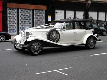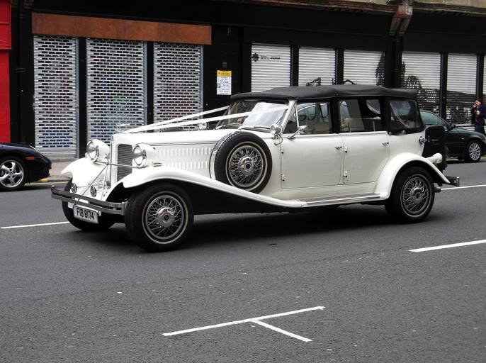 Keywords: car antique vintage white chrome ribbon wheel wheels wedding transport street road travel outdoors traffic automobile automotive shiny glossy vehicle