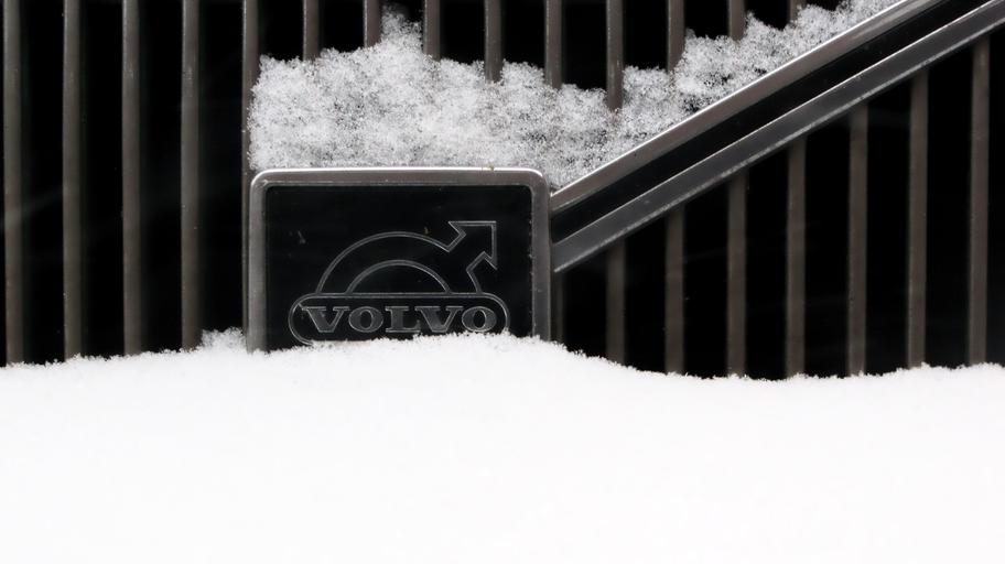 Keywords: car automotive volvo retro emblem close up detail grill logo winter hibernation snow snowbound