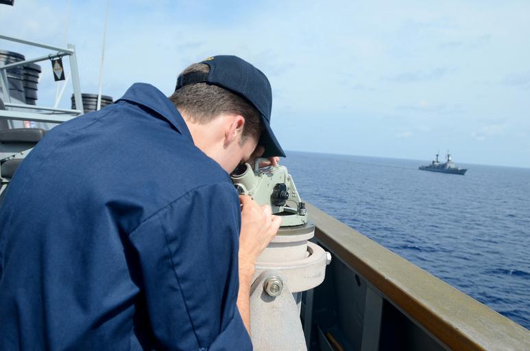 | Keywords: CARAT Philippines 2013 130629-N-YU572-401.jpg en Ensign Sean Quirk uses an alidade to get a bearing to the Philippine navy frigate Gregorio Del Pilar PF 15 aboard the guided-missile destroyer USS Fitzgerald DDG 62 during Cooperation Afloat Readiness and Training Philippines 2013 CARAT is a series of bilateral military exercises between the U S Navy and the armed forces of Bangladesh Brunei Cambodia Indonesia Malaysia the Philippines Singapore Thailand and Timor-Leste U S Navy photo by Mass Communication Specialist 1st Class Jay C Pugh/Released 2013-06-29 Petty Officer 1st Class Jay Pugh https //www dvidshub net/image/964286 130629-N-YU572-401 2013-07-01 23 07 PHILIPPINE SEA PD-USGov-Military-Navy Cooperation Afloat Readiness and Training 2013 USS Fitzgerald DDG-62 Images from DoD uploaded by Fæ |