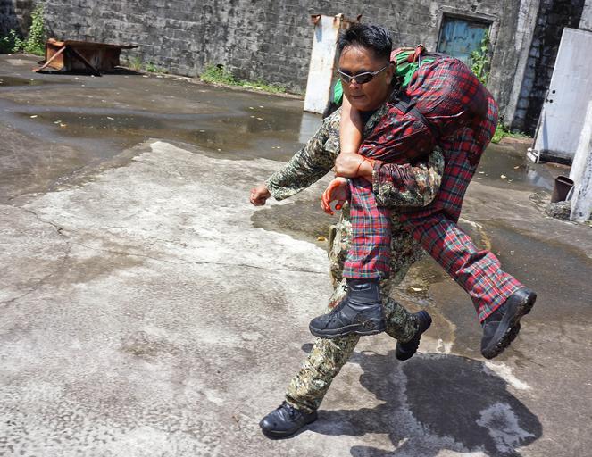 | Keywords: CARAT Philippines 2013 130701-N-YU482-095.jpg en A Philippine Navy sailor uses a fireman carry to transport a mock casualty during the final exercise of the Operator Course in Tactical Combat Casualty Care TCCC July 1 U S sailors from the Maritime Civil Affairs and Security Training Command began the course by teaching Philippine instructors who then trained and graduated 28 students with TCCC provider certification in support of Cooperation Afloat Readiness and Training CARAT Philippines 2013 More than 600 sailors and Marines are participating in CARAT Philippines 2013 U S Navy units participating in CARAT Philippines include the guided missile destroyer USS Fitzgerald DDG 62 with embarked Destroyer Squadron DESRON 7 staff a U S Marine Corps landing force and the diving and salvage vessels USNS Safeguard T-ARS 50 and USNS Salvor T-ARS 52 with embarked Mobile Diving and Salvage Unit MDSU 1 CARAT is a series of bilateral military exercises between the U S Navy and the armed forces of Bangladesh Brunei Cambodia Indonesia Malaysia the Philippines Singapore Thailand and Timor Leste U S Navy photo by Mass Communication Specialist 1st Class Stephen Hickok/RELEASED 2013-07-01 Petty Officer 1st Class Stephen Hickok https //www dvidshub net/image/986289 130701-N-YU482-095 2013-08-01 10 15 SUBIC BAY PH PD-USGov-Military-Navy Cooperation Afloat Readiness and Training 2013 Mobile Diving and Salvage Unit 1 USNS Safeguard T-ARS-50 USS Fitzgerald DDG-62 Images from DoD uploaded by Fæ |