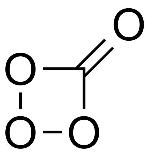 Keywords: Carbon tetroxide.svg Chemical structure of carbon tetroxide 1 2 3-trioxetan-4-one; 4-Trioxetanone Own 13 18 30 May 2013 UTC Ed Edgar181 Carbon oxides Four-membered oxygen heterocycles