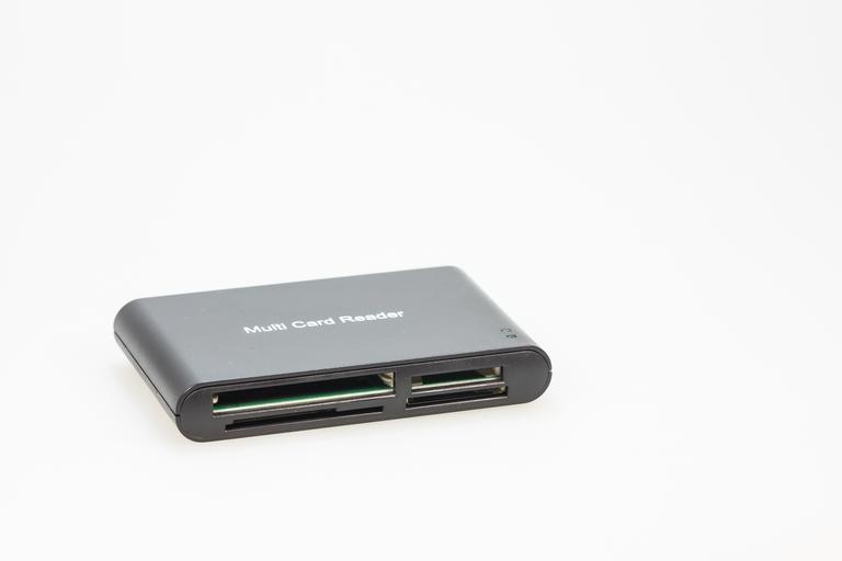Keywords: card reader multi card sd cf compact flash usb coumputer connection accessories macro hardware periphaerie data processing black cut out