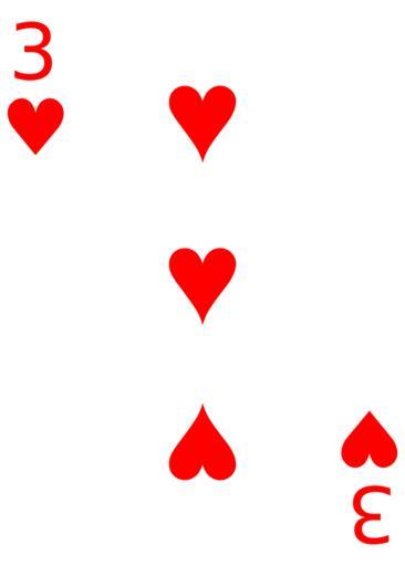 Keywords: Cards-3-Heart.svg Part of a set of SVG Playing Cards Own 2008-05-05 me Public Domain GW Simulations en 3 of Hearts SVG playing cards 1 Individual playing cards SVG playing cards ™¥