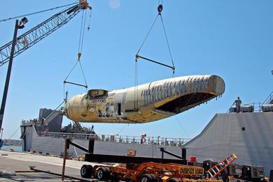Keywords: Cargo loading trainer 090722-N-MQ132-040.jpg en The fuselage of a giant C-17 cargo aircraft is lifted onto the Army transport ship SSGT Robert T Kuroda LSV-7 at the Seal Beach Naval Weapons Station The 170-foot-long 25-foot-high aircraft shell will be transported to the U S Army Transportation School at Fort Lee VA to be used as a cargo loading trainer U S Navy photo by Gregg Smith/Released 2009-07-22 Rear Adm Gregg Smith https //www dvidshub net/image/1277419 090722-N-MQ132-040 2014-04-26 10 19 US PD-USGov-Military-Navy Fort Lee Virginia Images from DoD uploaded by Fæ |