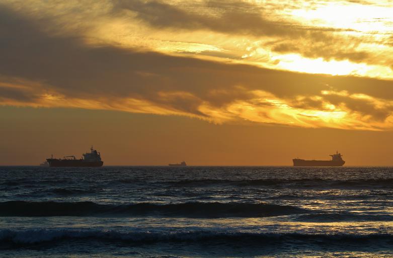 Keywords: cargo ships freighter container ship evening sky sea ocean clouds coast ship shipping cargo