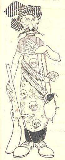 Keywords: Caricatura de Zapata 13.jpg Leyenda El Modelo Emiliano Todos creían que ya había pasado; pero ha vuelto a ponerse de moda Publicación Multicolor 31 agosto 1911 año 1 núm 23 página 10 Caricaturista Hecho Poco resultado había conseguido el gobierno federal para licenciar a las tropas zapatistas ya que el problema fundamental el reparto de tierra no se había resuelto ocasionando que los campesinos estuvieran vigentes en su lucha armada El caricaturista muestra de figura esbelta vistiendo un conjunto de dos piezas estampado en calaveras de la colección Emiliano misma que es acompañada por cuchillas balas y un fusil PD-old Caricatures of Emiliano Zapata |