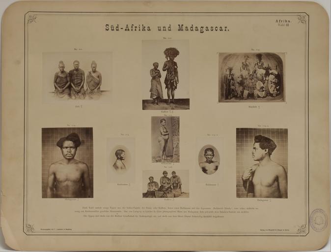 | Keywords: Carl Dammann - Photography Album on Anthropology- Ethnology by C. Dammann made in Hamburg (1873-1874) - Google Art Project.jpg commons date commons medium commons dimensions commons institution commons location commons references commons object_history commons exhibition_history commons credit_line commons inscriptions commons notes commons accession_number commons source commons permission commons other_versions commons zoom core title Photography Album on Anthropology- Ethnology by C Dammann made in Hamburg 1873-1874 core creator Carl Dammann core date dateCreated 1873/1876 core format w62 2 x h47 3 cm Complete core type Photograph core rights http //mnantropologia mcu es/ core relation http //ceres mcu es/pages/Main idt 22273 inventary FD4309 table FDOC museum MNA core format medium Albumen paper cardboard art artist_date 1819/1874 art artist_nationality German art artist_birth_place Hamburg c-053bddb4 customtext subject Photography / Anthropology c-053bddb4 customtext cultural_context Contemporary Era c-053bddb4 customtext notas_sobre_el_objeto El álbum Antropologisch-Ethnologisches Albums in Photographien von C Dammann in Hamburg 1873-1874 Album de fotografías sobre Antropología-Etnología de C Dammann realizado en Hamburgo está formado por una carpeta de gran formato que contiene 50 láminas con 642 fotografías Las fotografías de diferentes tamaños y en papel albúmina se agrupan en diferentes composiciones Las láminas contienen desde 5 a 18 fotografías variando siempre el formato Cada una de las láminas contiene un pequeño comentario descriptivo y en su caso el autor o la procedencia de la fotografía Individualmente cada imagen lleva un pie de foto donde generalmente se indica el sexo edad y nombre del personaje retratado La mayoría son retratos o composiciones de estudio ofreciendo imágenes estereotipadas Este álbum responde al interés por la fotografía que comienza a despertar en el último tercio del s XIX como único medio para satisfacer la curiosidad creciente por otros grupos y culturas En el ámbito científico la fotografía supone la posibilidad de acceder al conocimiento de otros grupos del mundo ya que permitía su estudio a todos aquellos que no tenían acceso a esos lugares La importancia de esta técnica hace que se empiecen a editar manuales con normas e instrucciones acerca de cómo se deben tomar las imágenes sobre todo en función de los estudios antropológicos pues el objetivo era facilitar el trabajo de los posibles estudiosos de otros grupos que en ese momento no eran los propios antropólogos sino comerciantes viajeros misioneros etc La inquietud por recopilar el mayor número de imágenes conlleva la edición de los denominados álbumes etnográficos que hacen referencia a un país o a un viaje Ejemplo de ello es este álbum encargado a Carl Dammann por la Berliner Gesellschaft für Anthropologie Ethnologie und Urgeschichte Sociedad de Antropología Etnología y Prehistoria de Berlin en un intento de difundir este tipo de imágenes en Alemania El autor se dedicó a recoger fotografías realizadas por otros autores y agruparlas en un álbum que se editó bajo el nombre de Anthropologisch-Ethnologisches Albums in Photographien von Carl Dammann in Hamburg 1873-1874 El éxito de este álbum uno de los primeros y más completo de este tipo de los que se tiene noticia llevó a su autor a ganar una medalla de bronce en la Exposición Internacional de Viena de 1873 Este dato se refleja en varias láminas donde aparece impresa su condición de ganador de dicha Exposición c-053bddb4 customtext procedencia_extent Complete c-053bddb4 customtext cultural_context_extent Complete c-053bddb4 customtext cultural_context_source Museo Nacional de Antropología c-053bddb4 customtext material_extent Complete c-053bddb4 customtext material_source Museo Nacional de Antropología c-053bddb4 customtext measurement_diameter_extent Complete c-053bddb4 customtext measurement_diameter_source Museo Nacional de Antropología c-053bddb4 customtext notas_sobre_el_objeto_extent Complete c-053bddb4 customtext subject_source Museo Nacional de Antropología c-053bddb4 customtext subject_extent Complete c-053bddb4 customtext notas_sobre_el_objeto_source Museo Nacional de Antropología c-053bddb4 customtext provenance_source Museo Nacional de Antropología c-053bddb4 customtext provenance_extent Complete c-053bddb4 customtext procedencia_source Museo Nacional de Antropología google display_date 1873/1876 google is_artproject TRUE google is_gigapixel FALSE google is_secured TRUE google partner/id 00000000053bddb4 google picasa_token BEOoEee6fX-a6b-n8yY1-lvKG0E special url_id nwHdJ50G3bj2zA google partner/name Museo Nacional de Antropología Madrid special partner/name_no_lang Museo Nacional de Antropología Madrid PD-old-100-1923 1874 Anatomy collections in the Museo Nacional de Antropología España Google Art Project works by Carl Dammann |