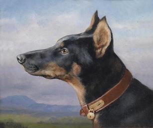 | Keywords: Carl Reichert Portrait eines Dobermanns 1916.jpg Portrait eines Dobermanns C Reichert 1916 signature/date lower left oil on wood 14 x 16 cm http //www dorotheum com Dorotheum 1916 creator Carl Reichert PD-old Images from Dorotheum Carl Reichert painter 1916 paintings 20th-century paintings of dogs Dobermanns in art Portrait paintings of dogs |