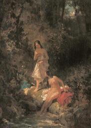 Keywords: Carl Spitzweg - Badende Mädchen.jpg Artwork Creator Carl Spitzweg ca 1860 Oil on canvas cm 38 26 Private collection accession number object history credit line Joachim Nagel Carl Spitzweg Belser Stuttgart 2008 p 91 PD-old-100 Paintings by Carl Spitzweg Romantic genre paintings Group paintings of women bathing outdoors |
