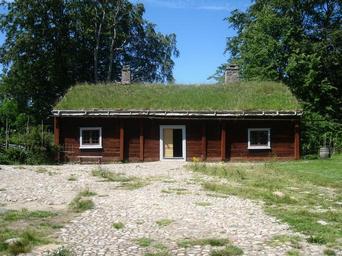 Keywords: carl von linne birthplace råshult småland house stone setting grass summer tree sky blue roof chimney door window