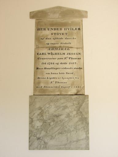Keywords: Carl Wilhelm Jessens ligsten.JPG Admiral Carl Wilhelm Jessens 1764-1825 ligsten fra St Thomas Holmen Kirkes store gravkapel København own 2011-10 Orf3us Holmens Kirke PD-old-100