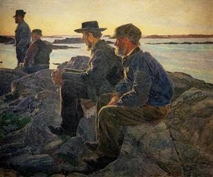 Keywords: Carl Wilhelm Wilhelmson - On Rocks at Fiskebackskil.jpg Artwork Creator Carl Wilhelmson 1905-1906 oil canvas cm 126 151 Institution Göteborgs konstmuseum accession number object history credit line 574451 PD-old-auto-1923 1928 Paintings by Carl Wilhelmson Paintings in Göteborgs Konstmuseum Paintings in Sweden Paintings of men sitting on rocks outdoors Group portrait paintings Paintings of fishermen at the beach