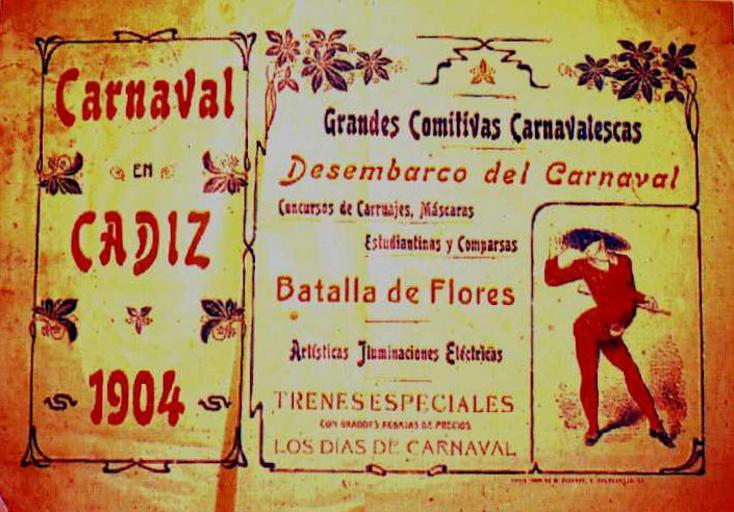 Keywords: CarnavalCadiz1904.JPG Cartel anunciador del carnaval de Cádiz de 1904 1904 PD-old 1904 in Andalusia Carnival of Cádiz 1904 advertisements Advertising posters of Spain Carnival posters Posters in Andalusia History of Cádiz