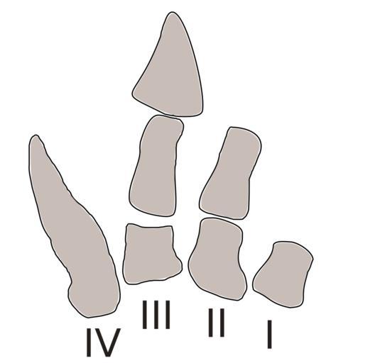 Keywords: Carnotaurus manus.svg en Hand structure of Carnotaurus sastrei Based on Javier Ruiz Angélica Torices Humberto Serrano Valle López The hand structure of Carnotaurus sastrei Theropoda Abelisauridae implications for hand diversity and evolution in abelisaurids In Palaeontology 54 No 6 2011 p 1271 “1277 de Handstruktur von Carnotaurus sastrei nachgezeichnet nach Javier Ruiz Angélica Torices Humberto Serrano Valle López The hand structure of Carnotaurus sastrei Theropoda Abelisauridae implications for hand diversity and evolution in abelisaurids In Palaeontology 54 Nr 6 1 Oktober 2011 S 1271 “1277 own Jens Lallensack 2012-03-31 Carnotaurus fossils Cc-zero |