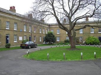 Keywords: Caroline Gardens Back Section Corner.JPG South of the back section on the Caroline Gardens Estate in Peckham South London UK This was originally built as the Licensed Victuallers Asylum in 1827 2006-12-10 own assumed Vaughan~commonswiki Caroline Gardens |