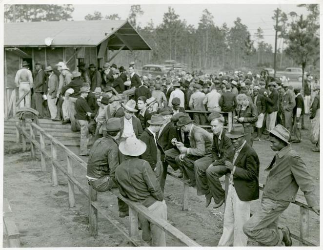 MAKE A MEME View Large Image Carpenters and construction workers waiting outside Florida State employment office trying to get jobs on Camp Blanding, Starke, Florida. Dec. 1940. Wolcott, Marion Post -- Photographer. December 1940 Notes: Original negative #: 56746-D ...
