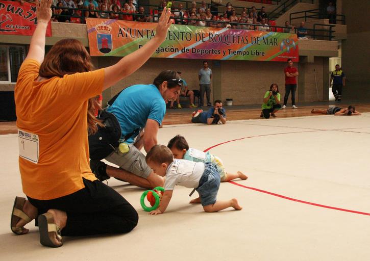 Keywords: roquetas de mar roquetasdemar roquetas de mar deporte roquetasdemardeporte deportes roquetas de mar deportesroquetasdemar deportes verano roquetas deportesveranoroquetas carrera gateos carreragateos La carrera de gateos para bebés, ‘Todos nacemos deportistas’, ha sido una de las principales novedades de la edición número XXX de Las 100 Horas del Deporte de Roquetas de Mar. Se celebró el 14 de agosto, en el Pabellón Infanta Cristina. Contó con la participación de 14 de bebés. La competición se ha regido por las siguientes normas: en un tapiz se han dibujado dos circunferencias, una pequeña de color azul, y otra más grande alrededor de la anterior de color rojo. Los padres tenían que dejar a sus pequeños en el círculo azul. Al sonar el silbato, que daba inicio a la prueba, los padres tenían que situarse por detrás del círculo rojo para animar a sus hijos a que gateasen hasta cruzar esa línea. Primero se han disputado tres series. El bebé que cruzaba la línea roja en primera posición de cada serie se clasificaba para la final. Tres bebés se han clasificado para la finalísima, que ha estado muy igualada, casi ha sido necesaria la foto finnish. El podio ha quedado encabezado por Luca López, seguido de Serafín Jiménez, segundo, y de Alma González, que ha ocupado el tercer puesto. El resultado era lo de menos. Los tres primeros clasificados han recibido una medalla, seguramente la primera que conquistan en su vida, y a todos los participantes se les ha hecho entrega de un diploma para que quede constancia de su primera incursión en Las 100 Horas del Deporte de Roquetas de Mar. La carrera de gateos para bebés, ‘Todos nacemos deportistas’, ha sido una de las principales novedades de la edición número XXX de Las 100 Horas del Deporte de Roquetas de Mar. Se celebró el 14 de agosto, en el Pabellón Infanta Cristina. Contó con la participación de 14 de bebés. La competición se ha regido por las siguientes normas: en un tapiz se han dibujado dos circunferencias, una pequeña de color azul, y otra más grande alrededor de la anterior de color rojo. Los padres tenían que dejar a sus pequeños en el círculo azul. Al sonar el silbato, que daba inicio a la prueba, los padres tenían que situarse por detrás del círculo rojo para animar a sus hijos a que gateasen hasta cruzar esa línea. Primero se han disputado tres series. El bebé que cruzaba la línea roja en primera posición de cada serie se clasificaba para la final. Tres bebés se han clasificado para la finalísima, que ha estado muy igualada, casi ha sido necesaria la foto finnish. El podio ha quedado encabezado por Luca López, seguido de Serafín Jiménez, segundo, y de Alma González, que ha ocupado el tercer puesto. El resultado era lo de menos. Los tres primeros clasificados han recibido una medalla, seguramente la primera que conquistan en su vida, y a todos los participantes se les ha hecho entrega de un diploma para que quede constancia de su primera incursión en Las 100 Horas del Deporte de Roquetas de Mar.