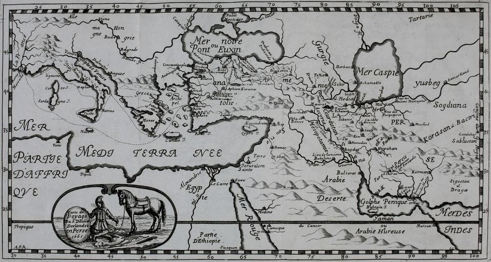 Keywords: Carte du voyage du sieur Daulier Deslandes en Perse (1661).jpg de ce qu'il y a de plus curieux dans ce Royaume enrichie de la Carte du Pays de plusieurs estampes dessinées sur les lieux 1673 André Daulier Deslandes dessin Israël Silvestre Antoine Paillet gravure PD-old-100 ImageNote 1 161 315 33 33 3308 1767 2 Lyon Royaume de France ImageNoteEnd 1 ImageNote 2 120 472 33 33 3308 1767 2 Le Rhône fleuve ImageNoteEnd 2 ImageNote 3 161 443 33 33 3308 1767 2 Marseille Royaume de France ImageNoteEnd 3 ImageNote 4 364 575 33 33 3308 1767 2 Corse République de Gênes ImageNoteEnd 4 ImageNote 5 351 666 33 33 3308 1767 2 Sardaigne Couronne d'Aragon Monarchie catholique des Espagnes Maison de Habsbourg ImageNoteEnd 5 ImageNote 6 414 492 33 33 3308 1767 2 Livourne Ligourne sur la carte Grand-duché de Toscane ImageNoteEnd 6 ImageNote 7 343 422 33 33 3308 1767 2 Gênes République de Gênes ImageNoteEnd 7 ImageNote 8 542 521 33 33 3308 1767 2 Rome États pontificaux ImageNoteEnd 8 ImageNote 9 633 728 33 33 3308 1767 2 Messine Couronne d'Aragon Monarchie catholique des Espagnes Maison de Habsbourg ImageNoteEnd 9 ImageNote 10 521 352 33 33 3308 1767 2 Venise République de Venise ImageNoteEnd 10 ImageNote 11 380 939 33 33 3308 1767 2 Tunis Empire ottoman ImageNoteEnd 11 ImageNote 12 575 1142 33 33 3308 1767 2 Tripoli Empire ottoman ImageNoteEnd 12 ImageNote 13 1352 1126 33 33 3308 1767 2 Alexandrie Empire ottoman ImageNoteEnd 13 ImageNote 14 1418 1200 33 33 3308 1767 2 Le Caire Empire ottoman ImageNoteEnd 14 ImageNote 15 1613 1651 33 33 3308 1767 2 Suakin Suaquen sur la carte Empire ottoman ImageNoteEnd 15 ImageNote 16 1381 1610 33 33 3308 1767 2 Empire d'Éthiopie ImageNoteEnd 16 ImageNote 17 1766 1395 33 33 3308 1767 2 Médine Royaume du Hedjaz ImageNoteEnd 17 ImageNote 18 1803 1510 33 33 3308 1767 2 La Mecque Lameque sur la carte Royaume du Hedjaz ImageNoteEnd 18 ImageNote 19 1799 1552 33 33 3308 1767 2 Djeddah Gydda sur la carte Empire ottoman ImageNoteEnd 19 ImageNote 20 1555 1204 33 33 3308 1767 2 Suez Empire ottoman ImageNoteEnd 20 ImageNote 21 1662 1080 33 33 3308 1767 2 Jérusalem Empire ottoman ImageNoteEnd 21 ImageNote 22 1819 977 33 33 3308 1767 2 Damas Empire ottoman ImageNoteEnd 22 ImageNote 23 463 439 33 33 3308 1767 2 Italie région géographique ImageNoteEnd 23 ImageNote 24 587 861 33 33 3308 1767 2 Malte Ordre des Hospitaliers ImageNoteEnd 24 ImageNote 25 562 757 33 33 3308 1767 2 Sicile Couronne d'Aragon Monarchie catholique des Espagnes Maison de Habsbourg ImageNoteEnd 25 ImageNote 26 657 410 33 33 3308 1767 2 Dalmatie République de Venise ImageNoteEnd 26 ImageNote 27 674 137 33 33 3308 1767 2 Vienne Viene sur la carte Archiduché d'Autriche Maison de Habsbourg ImageNoteEnd 27 ImageNote 28 782 236 33 33 3308 1767 2 Buda Bude sur la carte Empire ottoman ImageNoteEnd 28 ImageNote 29 827 203 33 33 3308 1767 2 Région de l'ancien Royaume de Hongrie divisée entre l'Archiduché d'Autriche et l'Empire ottoman ImageNoteEnd 29 ImageNote 30 823 356 33 33 3308 1767 2 Belgrade Empire ottoman ImageNoteEnd 30 ImageNote 31 719 484 33 33 3308 1767 2 Dubrovnik Raguse sur la carte Empire ottoman ImageNoteEnd 31 ImageNote 32 513 112 33 33 3308 1767 2 Allemagne région géographique ImageNoteEnd 32 ImageNote 33 1067 737 33 33 3308 1767 2 Athènes qu'on appelait aussi Sétines à l'époque Empire ottoman ImageNoteEnd 33 ImageNote 34 992 803 33 33 3308 1767 2 Péloponnèse qu'on appelait la Morée à l'époque Empire ottoman ImageNoteEnd 34 ImageNote 35 1034 497 33 33 3308 1767 2 Thessalonique Salonique sur la carte Empire ottoman ImageNoteEnd 35 ImageNote 36 1257 426 33 33 3308 1767 2 Constantinople Empire ottoman ImageNoteEnd 36 ImageNote 37 1187 447 33 33 3308 1767 2 Andrinople maintenant Edirne Empire ottoman ImageNoteEnd 37 ImageNote 38 1832 828 33 33 3308 1767 2 Alexandrette Empire ottoman ImageNoteEnd 38 ImageNote 39 1877 828 33 33 3308 1767 2 Alep Empire ottoman ImageNoteEnd 39 ImageNote 40 1505 778 33 33 3308 1767 2 Satalie maintenant Antalya Empire ottoman ImageNoteEnd 40 ImageNote 41 1298 770 33 33 3308 1767 2 Ruines d'Éphèse Reste d'Éphèse sur la carte Empire ottoman ImageNoteEnd 41 ImageNote 42 1303 691 33 33 3308 1767 2 Smyrne Izmir pour les Turcs Empire ottoman ImageNoteEnd 42 ImageNote 43 1278 608 33 33 3308 1767 2 Lieu de Troie selon Daulier Deslandes qui ne se trouverait en fait pas là Empire ottoman ImageNoteEnd 43 ImageNote 44 1356 505 33 33 3308 1767 2 Bursa Bourse sur la carte Empire ottoman ImageNoteEnd 44 ImageNote 45 1365 472 33 33 3308 1767 2 Izmit Ismid sur la carte l'ancienne Nicomédie Empire ottoman ImageNoteEnd 45 ImageNote 46 1534 381 33 33 3308 1767 2 Sinop Empire ottoman ImageNoteEnd 46 ImageNote 47 1447 385 33 33 3308 1767 2 Amasra ancienne Amastris Castamara sur la carte Empire ottoman ImageNoteEnd 47 ImageNote 48 1720 120 33 33 3308 1767 2 Le Don fleuve aussi appelé Tanaïs ImageNoteEnd 48 ImageNote 49 1563 108 33 33 3308 1767 2 Mer d'Azov Palus Méotide sur la carte francisation du latin Palus Meotis ImageNoteEnd 49 ImageNote 50 1828 422 33 33 3308 1767 2 Trabzon Trébizonde en français et aussi Trabozan sur la carte Empire ottoman ImageNoteEnd 50 ImageNote 51 1501 439 33 33 3308 1767 2 Tosya Tocia sur la carte Empire ottoman ImageNoteEnd 51 ImageNote 52 1460 451 33 33 3308 1767 2 Bolu Bolis sur la carte Empire ottoman ImageNoteEnd 52 ImageNote 53 1393 641 33 33 3308 1767 2 Ruines de Sardes Empire ottoman ImageNoteEnd 53 ImageNote 54 1439 617 33 33 3308 1767 2 Alaşehir ou Alacheur en français Allachars sur la carte site de l'ancienne cité de Philadelphie Empire ottoman ImageNoteEnd 54 ImageNote 55 1497 583 33 33 3308 1767 2 Afyonkarahisar Aphium Karassar sur la carte Empire ottoman ImageNoteEnd 55 ImageNote 56 1555 439 33 33 3308 1767 2 Osmancık Osmangik sur la carte Empire ottoman ImageNoteEnd 56 ImageNote 57 1617 463 33 33 3308 1767 2 Amasya Amasia sur la carte Empire ottoman ImageNoteEnd 57 ImageNote 58 1646 488 33 33 3308 1767 2 Tokat T