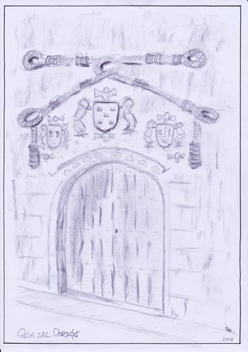 Keywords: Casa del Cordón.jpg es Dibujo al carboncillo de la Casa del Cordón GLB own Germán López Bravo 2008 Palace of Casa del Cordón Valdecañas de Cerrato