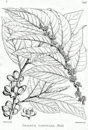 Keywords: Casearia tomentosa Bra31.png reduced from tab 31 of D Brandis Illustrations of the Forest Flora of North-West and Central India 1874 Casearia tomentosa published by Kurt Stüber http //www biolib de PD-old Casearia tomentosa