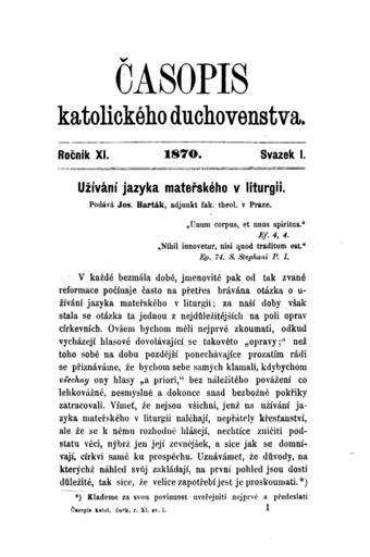 | Keywords: Casopis katolickeho duchovenstva 1870 01 001.png Časopis katolického duchovenstva Magazine of Catholic priests vol 11 issue 1 partially showing an article that discusses the usage of mother tongue in liturgy 1870 Google Books Josef Barták 1842-1878 PD-old-100 Uploaded with UploadWizard Magazines of the Czech Republic |